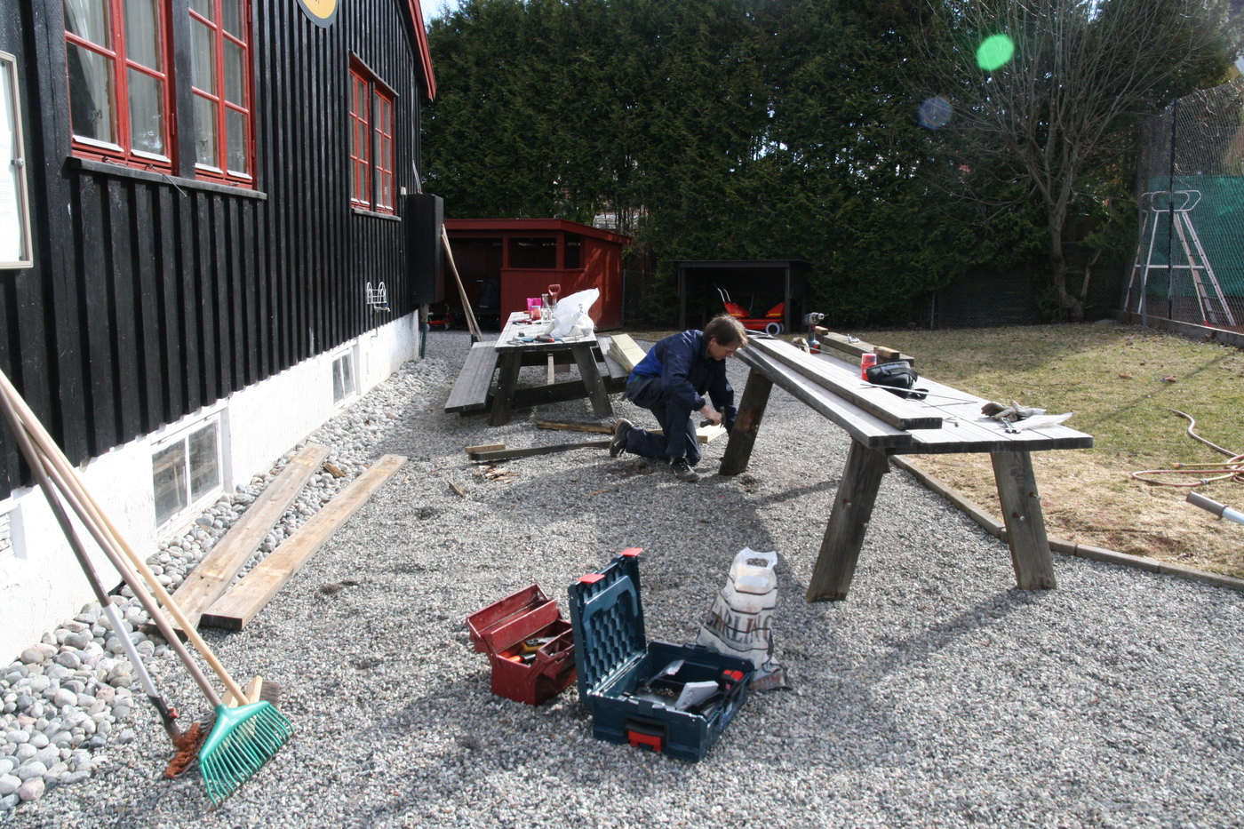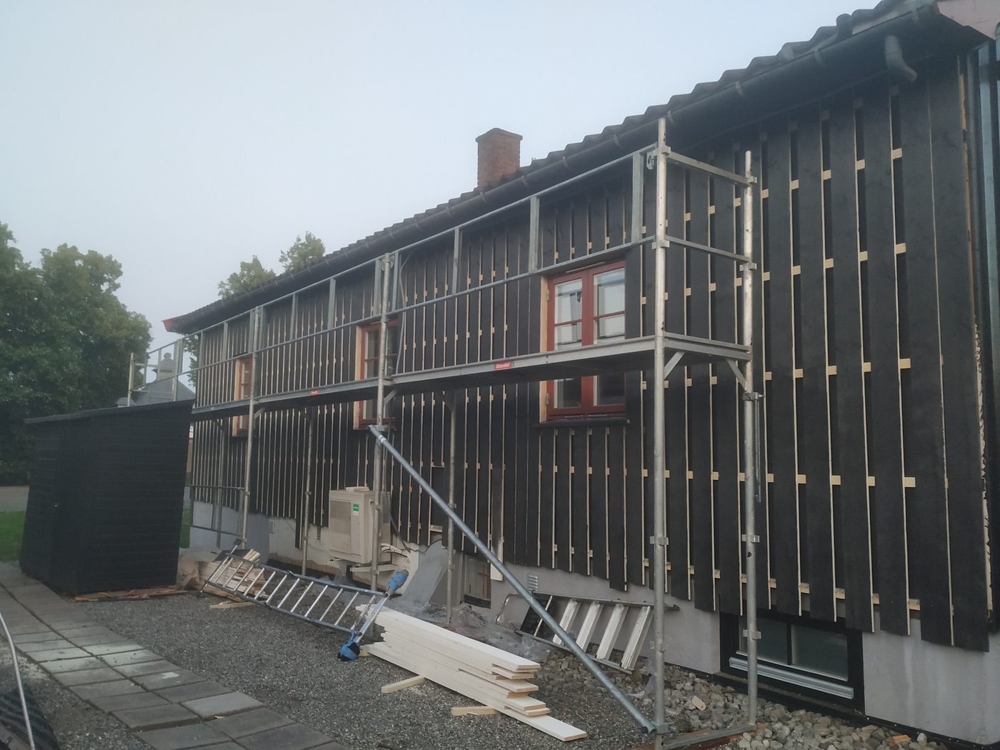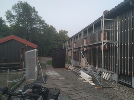 Oppussing og vedlikehold Hele huset, vegger og vinduer, bod og barnevognskur ble malt Huntonplater og lekter for panel har kommet på plass Det ble isolert med 12 cm glava Reisverket i den gamle delen ble rettet av før isolasjon ble lagt. Ingen isolasjon i den gamle stueveggen. I påbygget fra 1970 var det glava. Den gamle panelen rives Rehabilitering av vegg mot nord, sommeren 2025 Etterisolering med 10 cm rockwool Hunton asfaltplater er satt opp, så kommer lektene 12 mm Hunton asfaltplater ble lagt før lekter og panel Nytt tak på overbygg til kjeller Det var kun litt gammel glassvatt i kjøkkenvegg. Ellers 10 cm tomrom Rehabilitering av gavlvegg mot vest høsten 2018 Bak den gamle panelen var det kun et lag liggende underpanel. Ingen isolasjon i fakkene mellom stenderne. Sommeren 2014 - Nyoppusset kjøkken! Vi kjøpte ny komfyr og arvet et nesten nytt kjøleskap. Stua 2019 Vi fant et nytt Norema-kjøkken på Finn.no til 9000 kr. Supplerte med et par skap og en ny benkeplate i stein. 2014 - Kjøkkenet før oppussing. Det gamle har gjort nytten i over 20 år. 2014 - Kjøkkenet før oppussing 2014 - Oppussing kjøkken. Avretting av gulv og ny innredning. Nyoppusset stue 2013 - Ny dør mellom stuene 2014 - Vi maler stuene 2014 - Vi maler innvendig 2013 Stuen før maling 2014 2014 - Heller på uteplassen 2013 - Reparasjon av bord 2012 - Nye vinduer skiftet i halve huset (6 stk) 2011 2011 - Ferdigstillilse av terreng rundt huset 2011 - Dreneringsprosjekt 2011 - Etter drenering 2011 - Klubbhuset nyrenovert og drenert! 2011 - Nye rømningsvinduer i styrerom 2011 - Ferdigstillelse av terreng etter drenering 2011 - Dreneringsprosjekt 2011 - Dreneringsprosjekt Barnevognskur arvet og flyttet fra Rektorhaugen barnehage Nytt barnevognskur - arvet fra Rektorhaugen barnehage og fikset på 2010 - Vinduene er modne for utskifting Vindu før utskifting 2010 - Opparbeidelse av terreng rundt boden Noen ganger må det grundig rengjøring til! 2010 17. april 2015: Agnar har lagt opp lys på loftet Mars 2015: Loftet med nytt, isolert gulv Gutta fra Bygg og Rehabilitering AS gjorde en super jobb! 2015: Loftet Luftespalte 2009 - Beising av huset Litt kronglete arbeidsforhold Nytt/ekstra bjelkelag skal på plass Inspeksjon :-) Ferdig isolert Før: Uisolert tak/loftsgulv 2015: Loftet Februar 2015: Loftet før etterisolering av gulv 2015: Loftet 2015: Loftet - gulvet rundt pipa 2015: Loftet 2015: Loftet Frogner Isolering gjorde isolasjonsjobben. Innblåsing av Rockwool 2015: Nytt bad 2015: Nytt bad 2015: Ny garderobe 2011 - Nytt gulv med varme i styrerom 2011 - Rehabilitering kjeller. All innvendig kledning er revet. 2011 - Rehabilitering kjeller Hull til nytt vindu Stålbjelke på plass Vi pusser opp den gamle damegarderoben Ingeniøren har full kontroll - daglig på byggeplassen Her blir det vaskerom Vi har åpnet inn til den gamle herredusjen. All innvendig kledning ble fjernet i forbindelse med dreneringen i 2011 2011 - Rehabilitering kjeller. Vannet synker i veggen etter drenering :) Muren var våt helt opp til terreng. 2011 - Styrerommet etter riving av all kledning. Det var fuktighet i veggene 2011 - Rehabilitering kjeller 2011 - Rehabilitering kjeller 2011 - All innvendig kledning i kjeller rives Styrerommet før drenering/rehabilitering Lager før rehabilitering Del denne siden med andre! Ditt navn: Din epost: Mottakers navn: Mottakers epost: