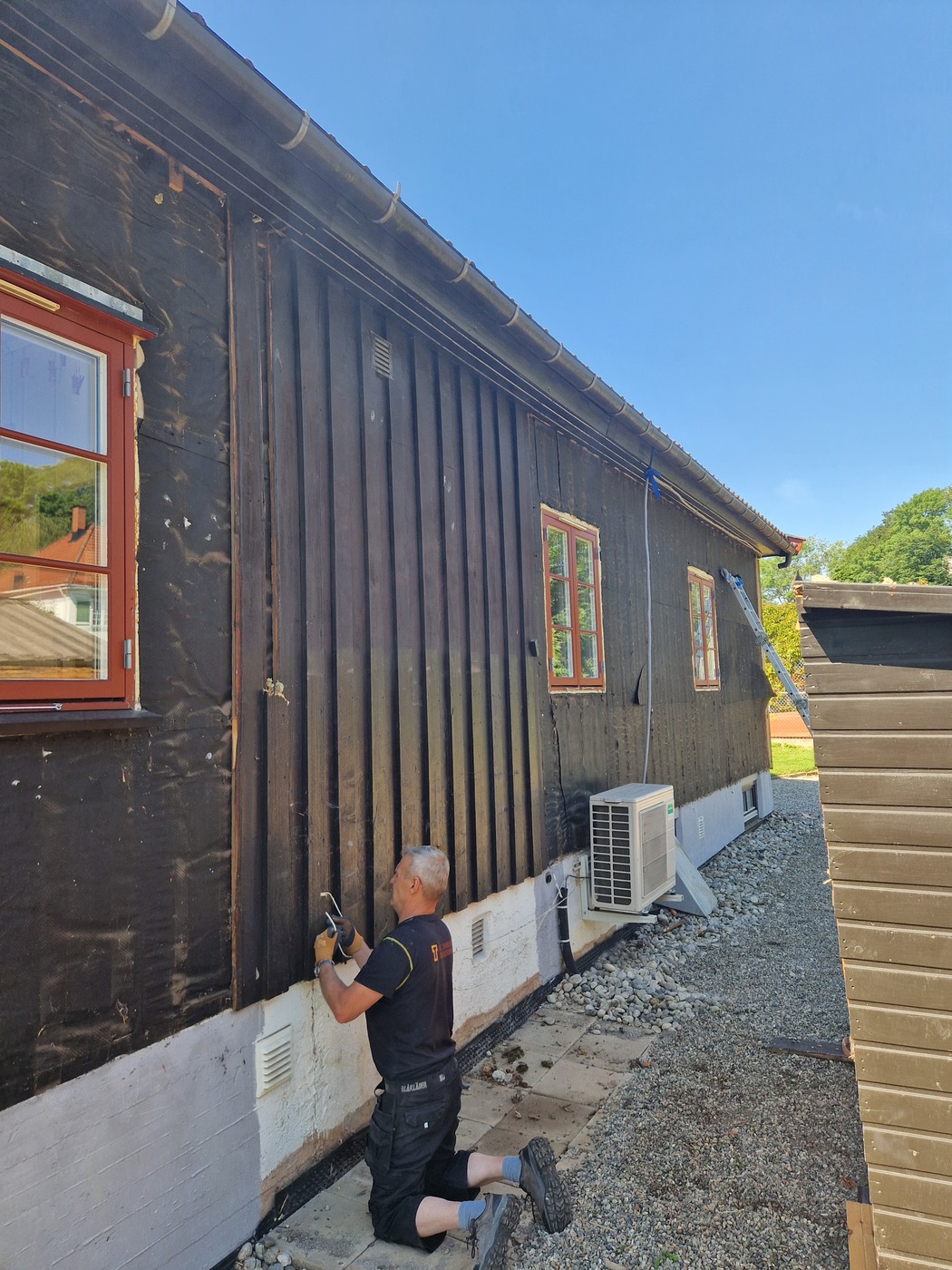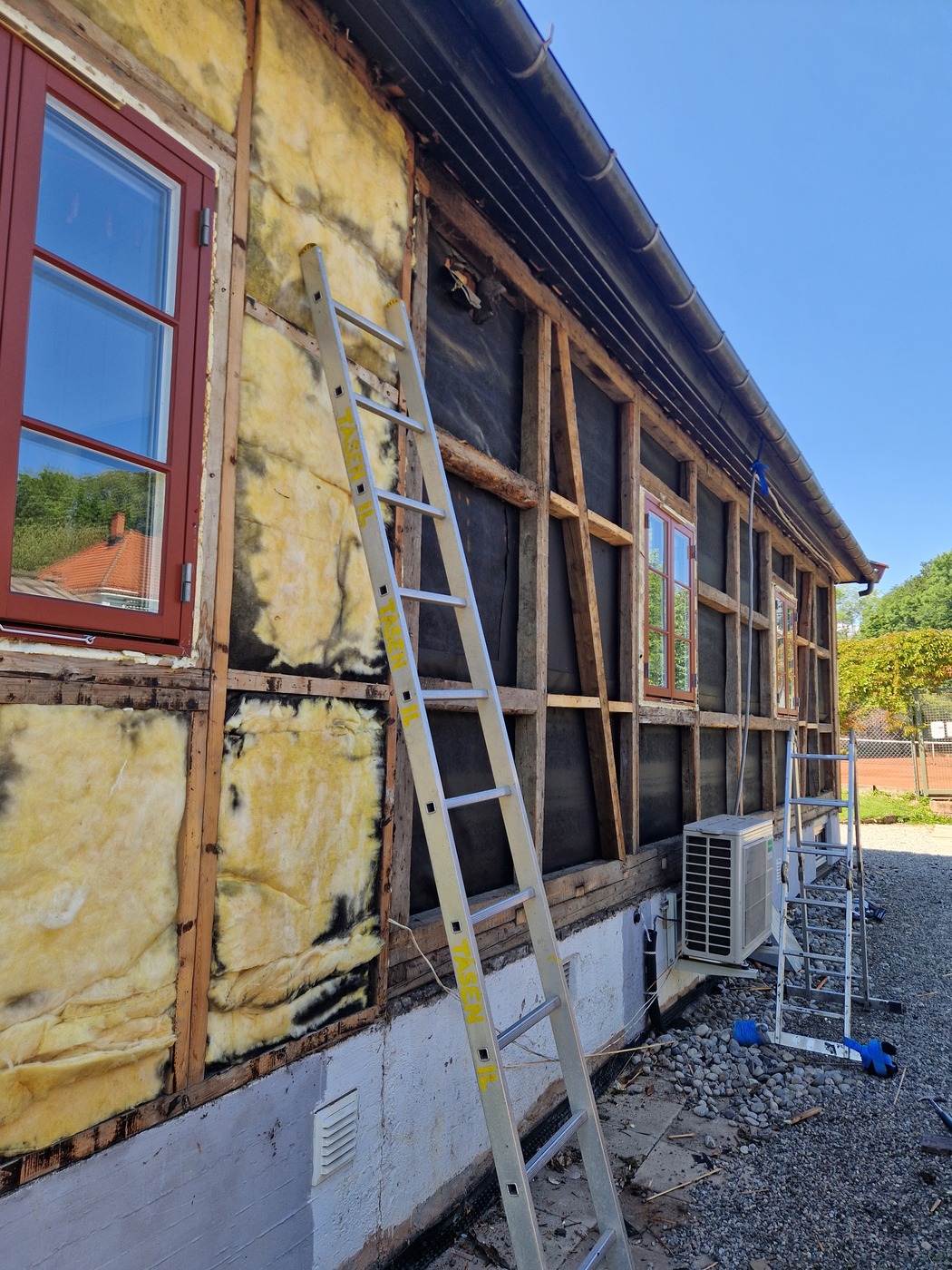 Oppussing og vedlikehold Hele huset, vegger og vinduer, bod og barnevognskur ble malt Huntonplater og lekter for panel har kommet på plass Det ble isolert med 12 cm glava Reisverket i den gamle delen ble rettet av før isolasjon ble lagt. Ingen isolasjon i den gamle stueveggen. I påbygget fra 1970 var det glava. Den gamle panelen rives Rehabilitering av vegg mot nord, sommeren 2025 Etterisolering med 10 cm rockwool Hunton asfaltplater er satt opp, så kommer lektene 12 mm Hunton asfaltplater ble lagt før lekter og panel Nytt tak på overbygg til kjeller Det var kun litt gammel glassvatt i kjøkkenvegg. Ellers 10 cm tomrom Rehabilitering av gavlvegg mot vest høsten 2018 Bak den gamle panelen var det kun et lag liggende underpanel. Ingen isolasjon i fakkene mellom stenderne. Sommeren 2014 - Nyoppusset kjøkken! Vi kjøpte ny komfyr og arvet et nesten nytt kjøleskap. Stua 2019 Vi fant et nytt Norema-kjøkken på Finn.no til 9000 kr. Supplerte med et par skap og en ny benkeplate i stein. 2014 - Kjøkkenet før oppussing. Det gamle har gjort nytten i over 20 år. 2014 - Kjøkkenet før oppussing 2014 - Oppussing kjøkken. Avretting av gulv og ny innredning. Nyoppusset stue 2013 - Ny dør mellom stuene 2014 - Vi maler stuene 2014 - Vi maler innvendig 2013 Stuen før maling 2014 2014 - Heller på uteplassen 2013 - Reparasjon av bord 2012 - Nye vinduer skiftet i halve huset (6 stk) 2011 2011 - Ferdigstillilse av terreng rundt huset 2011 - Dreneringsprosjekt 2011 - Etter drenering 2011 - Klubbhuset nyrenovert og drenert! 2011 - Nye rømningsvinduer i styrerom 2011 - Ferdigstillelse av terreng etter drenering 2011 - Dreneringsprosjekt 2011 - Dreneringsprosjekt Barnevognskur arvet og flyttet fra Rektorhaugen barnehage Nytt barnevognskur - arvet fra Rektorhaugen barnehage og fikset på 2010 - Vinduene er modne for utskifting Vindu før utskifting 2010 - Opparbeidelse av terreng rundt boden Noen ganger må det grundig rengjøring til! 2010 17. april 2015: Agnar har lagt opp lys på loftet Mars 2015: Loftet med nytt, isolert gulv Gutta fra Bygg og Rehabilitering AS gjorde en super jobb! 2015: Loftet Luftespalte 2009 - Beising av huset Litt kronglete arbeidsforhold Nytt/ekstra bjelkelag skal på plass Inspeksjon :-) Ferdig isolert Før: Uisolert tak/loftsgulv 2015: Loftet Februar 2015: Loftet før etterisolering av gulv 2015: Loftet 2015: Loftet - gulvet rundt pipa 2015: Loftet 2015: Loftet Frogner Isolering gjorde isolasjonsjobben. Innblåsing av Rockwool 2015: Nytt bad 2015: Nytt bad 2015: Ny garderobe 2011 - Nytt gulv med varme i styrerom 2011 - Rehabilitering kjeller. All innvendig kledning er revet. 2011 - Rehabilitering kjeller Hull til nytt vindu Stålbjelke på plass Vi pusser opp den gamle damegarderoben Ingeniøren har full kontroll - daglig på byggeplassen Her blir det vaskerom Vi har åpnet inn til den gamle herredusjen. All innvendig kledning ble fjernet i forbindelse med dreneringen i 2011 2011 - Rehabilitering kjeller. Vannet synker i veggen etter drenering :) Muren var våt helt opp til terreng. 2011 - Styrerommet etter riving av all kledning. Det var fuktighet i veggene 2011 - Rehabilitering kjeller 2011 - Rehabilitering kjeller 2011 - All innvendig kledning i kjeller rives Styrerommet før drenering/rehabilitering Lager før rehabilitering Del denne siden med andre! Ditt navn: Din epost: Mottakers navn: Mottakers epost: