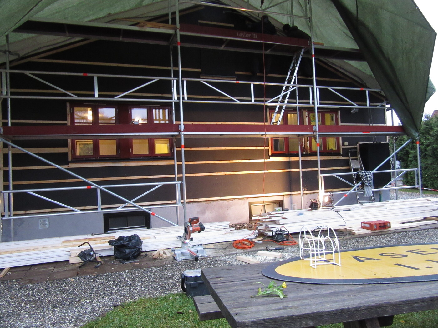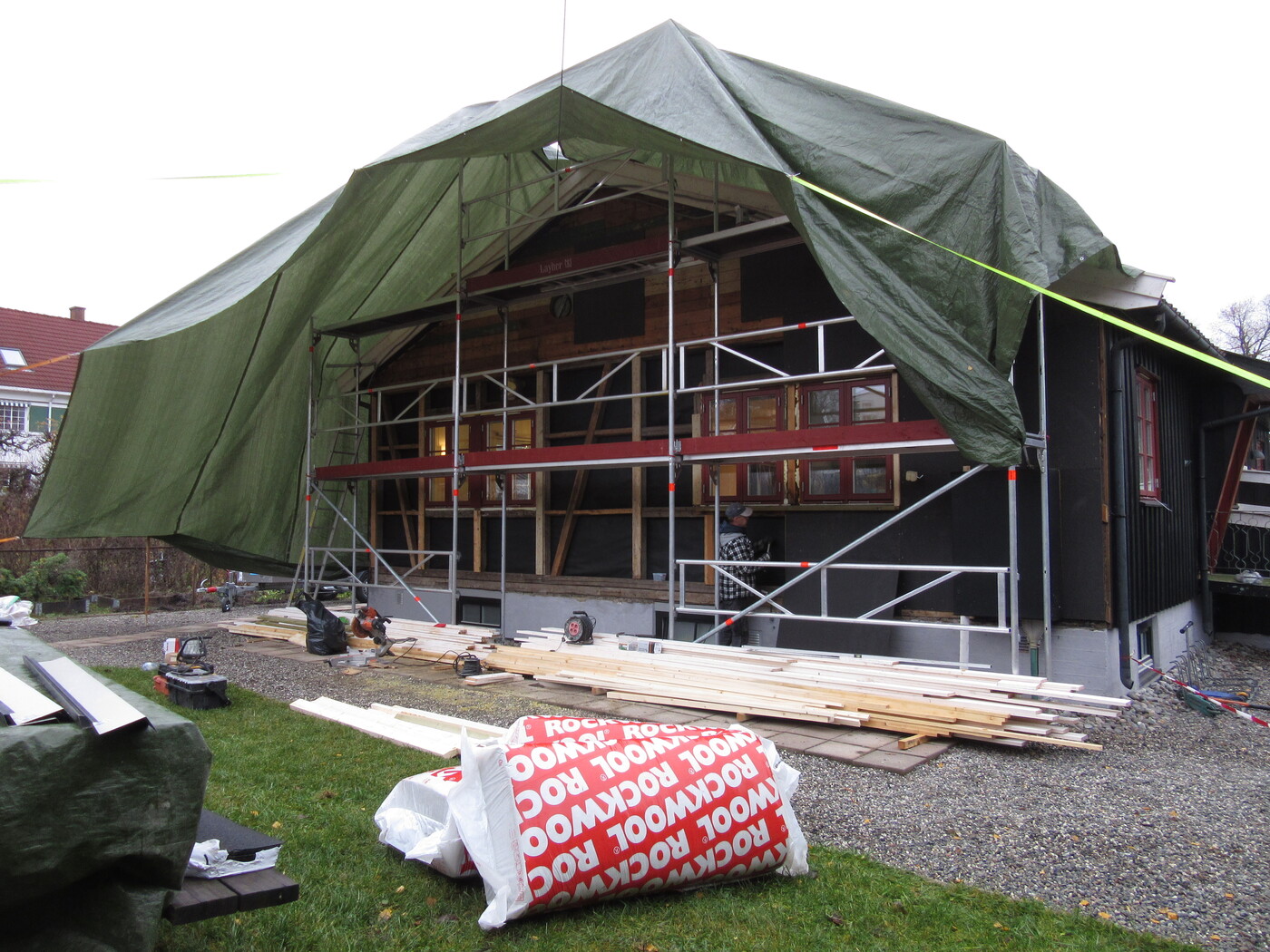 Oppussing og vedlikehold Hele huset, vegger og vinduer, bod og barnevognskur ble malt Huntonplater og lekter for panel har kommet på plass Det ble isolert med 12 cm glava Reisverket i den gamle delen ble rettet av før isolasjon ble lagt. Ingen isolasjon i den gamle stueveggen. I påbygget fra 1970 var det glava. Den gamle panelen rives Rehabilitering av vegg mot nord, sommeren 2025 Etterisolering med 10 cm rockwool Hunton asfaltplater er satt opp, så kommer lektene 12 mm Hunton asfaltplater ble lagt før lekter og panel Nytt tak på overbygg til kjeller Det var kun litt gammel glassvatt i kjøkkenvegg. Ellers 10 cm tomrom Rehabilitering av gavlvegg mot vest høsten 2018 Bak den gamle panelen var det kun et lag liggende underpanel. Ingen isolasjon i fakkene mellom stenderne. Sommeren 2014 - Nyoppusset kjøkken! Vi kjøpte ny komfyr og arvet et nesten nytt kjøleskap. Stua 2019 Vi fant et nytt Norema-kjøkken på Finn.no til 9000 kr. Supplerte med et par skap og en ny benkeplate i stein. 2014 - Kjøkkenet før oppussing. Det gamle har gjort nytten i over 20 år. 2014 - Kjøkkenet før oppussing 2014 - Oppussing kjøkken. Avretting av gulv og ny innredning. Nyoppusset stue 2013 - Ny dør mellom stuene 2014 - Vi maler stuene 2014 - Vi maler innvendig 2013 Stuen før maling 2014 2014 - Heller på uteplassen 2013 - Reparasjon av bord 2012 - Nye vinduer skiftet i halve huset (6 stk) 2011 2011 - Ferdigstillilse av terreng rundt huset 2011 - Dreneringsprosjekt 2011 - Etter drenering 2011 - Klubbhuset nyrenovert og drenert! 2011 - Nye rømningsvinduer i styrerom 2011 - Ferdigstillelse av terreng etter drenering 2011 - Dreneringsprosjekt 2011 - Dreneringsprosjekt Barnevognskur arvet og flyttet fra Rektorhaugen barnehage Nytt barnevognskur - arvet fra Rektorhaugen barnehage og fikset på 2010 - Vinduene er modne for utskifting Vindu før utskifting 2010 - Opparbeidelse av terreng rundt boden Noen ganger må det grundig rengjøring til! 2010 17. april 2015: Agnar har lagt opp lys på loftet Mars 2015: Loftet med nytt, isolert gulv Gutta fra Bygg og Rehabilitering AS gjorde en super jobb! 2015: Loftet Luftespalte 2009 - Beising av huset Litt kronglete arbeidsforhold Nytt/ekstra bjelkelag skal på plass Inspeksjon :-) Ferdig isolert Før: Uisolert tak/loftsgulv 2015: Loftet Februar 2015: Loftet før etterisolering av gulv 2015: Loftet 2015: Loftet - gulvet rundt pipa 2015: Loftet 2015: Loftet Frogner Isolering gjorde isolasjonsjobben. Innblåsing av Rockwool 2015: Nytt bad 2015: Nytt bad 2015: Ny garderobe 2011 - Nytt gulv med varme i styrerom 2011 - Rehabilitering kjeller. All innvendig kledning er revet. 2011 - Rehabilitering kjeller Hull til nytt vindu Stålbjelke på plass Vi pusser opp den gamle damegarderoben Ingeniøren har full kontroll - daglig på byggeplassen Her blir det vaskerom Vi har åpnet inn til den gamle herredusjen. All innvendig kledning ble fjernet i forbindelse med dreneringen i 2011 2011 - Rehabilitering kjeller. Vannet synker i veggen etter drenering :) Muren var våt helt opp til terreng. 2011 - Styrerommet etter riving av all kledning. Det var fuktighet i veggene 2011 - Rehabilitering kjeller 2011 - Rehabilitering kjeller 2011 - All innvendig kledning i kjeller rives Styrerommet før drenering/rehabilitering Lager før rehabilitering Del denne siden med andre! Ditt navn: Din epost: Mottakers navn: Mottakers epost: